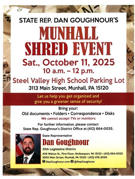 THE MEETING WILL BE HELD AT THE GLASSPORT MUNICIPAL BUILDING LOCATED AT 12 MONONGAHELA AVE, GLASSPORT, PA 15045